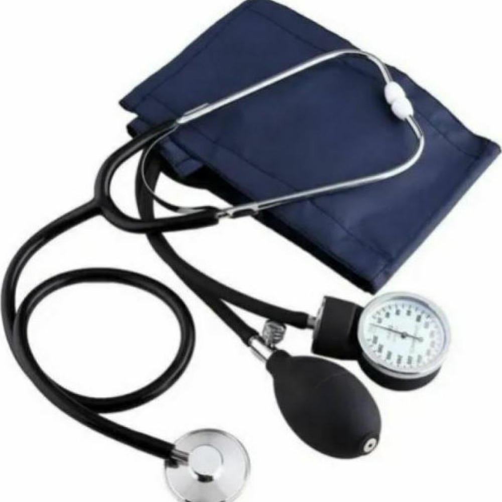 Αναλογικό πιεσόμετρο μπράτσου με στηθοσκόπιο, το οποίο μετρά την αρτηριακή πίεση.